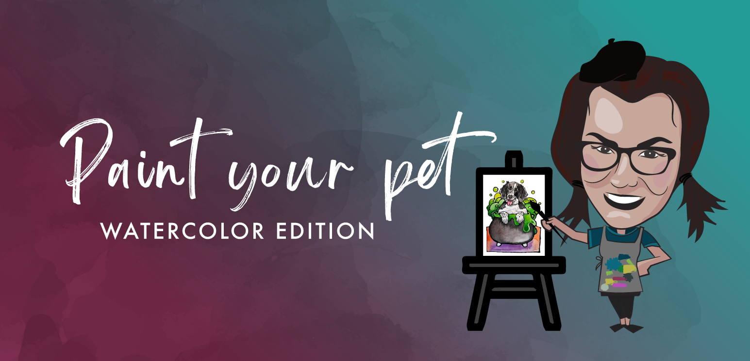 You will paint your pet starting with a premade watercolor page with a light image of your pet and their background with black glue, then take to painting with watercolors! Kait will guide you through each step and give you tips and tricks to make a memorable painting of your pet!